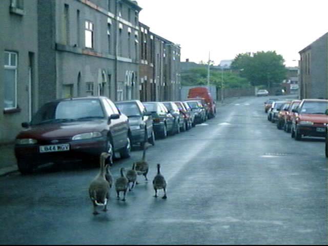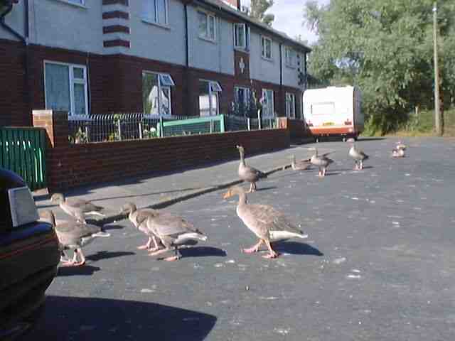 Geese on the road near Football Ground (June 2011)