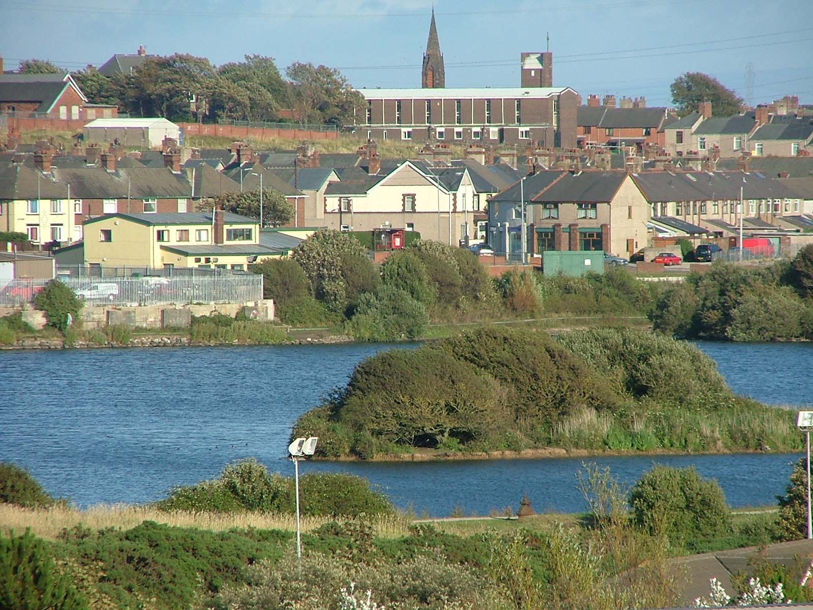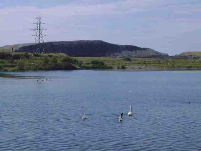 Barrow reservoir with the remains of the slag bank in the