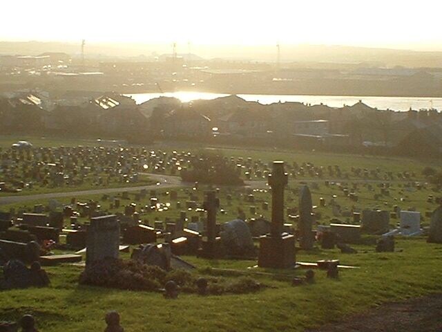 Sunset over cemetery towards wind farms (November 2011)