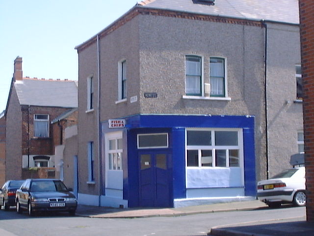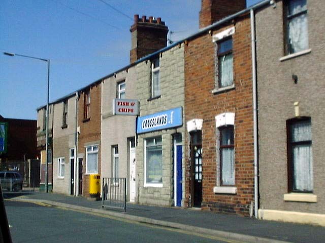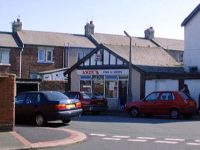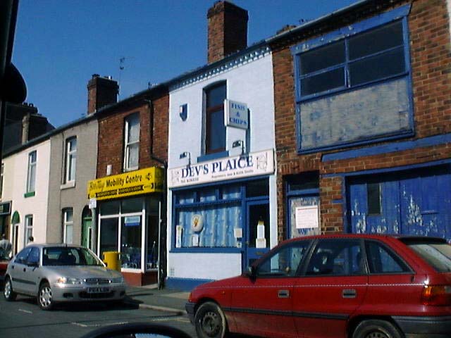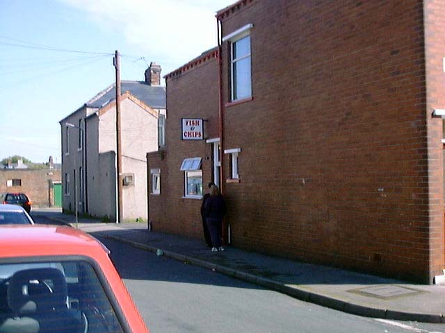 The shops at Lesh Lane. Theres a Chip shop (amd a chinese) in there somewhere.(June 2002) Matties Chip Shop corner of Newport Street and Ainslie Street(June 2002) McLeys Bakery corner of Kepple Street and Bath Street (June 2002) Mill Lane Chip Shop on Walney (June 2002) The Old Smithy Chip Shop at Roose(June 2002)