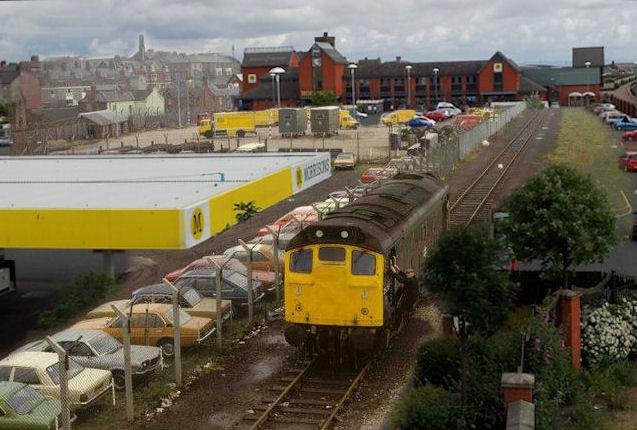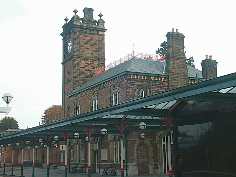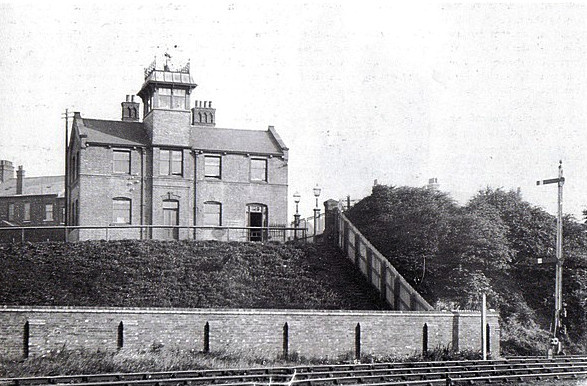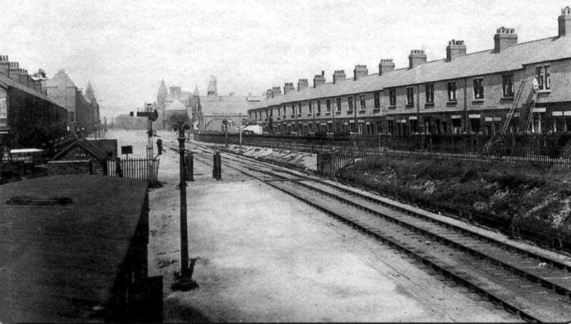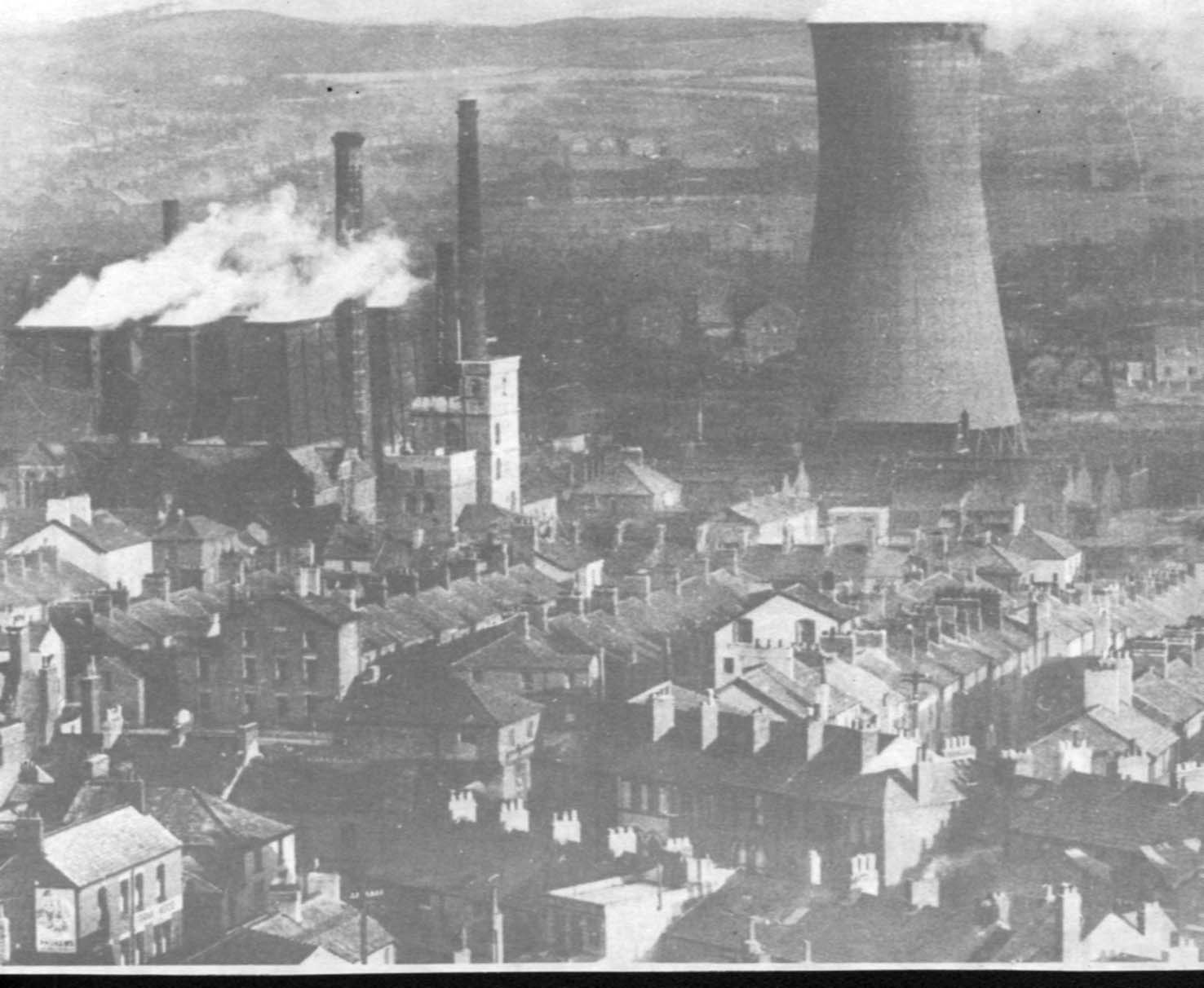 Barrow train station as it looked years ago with big cooling tower in background Undated Uploaded by UNKNOWN