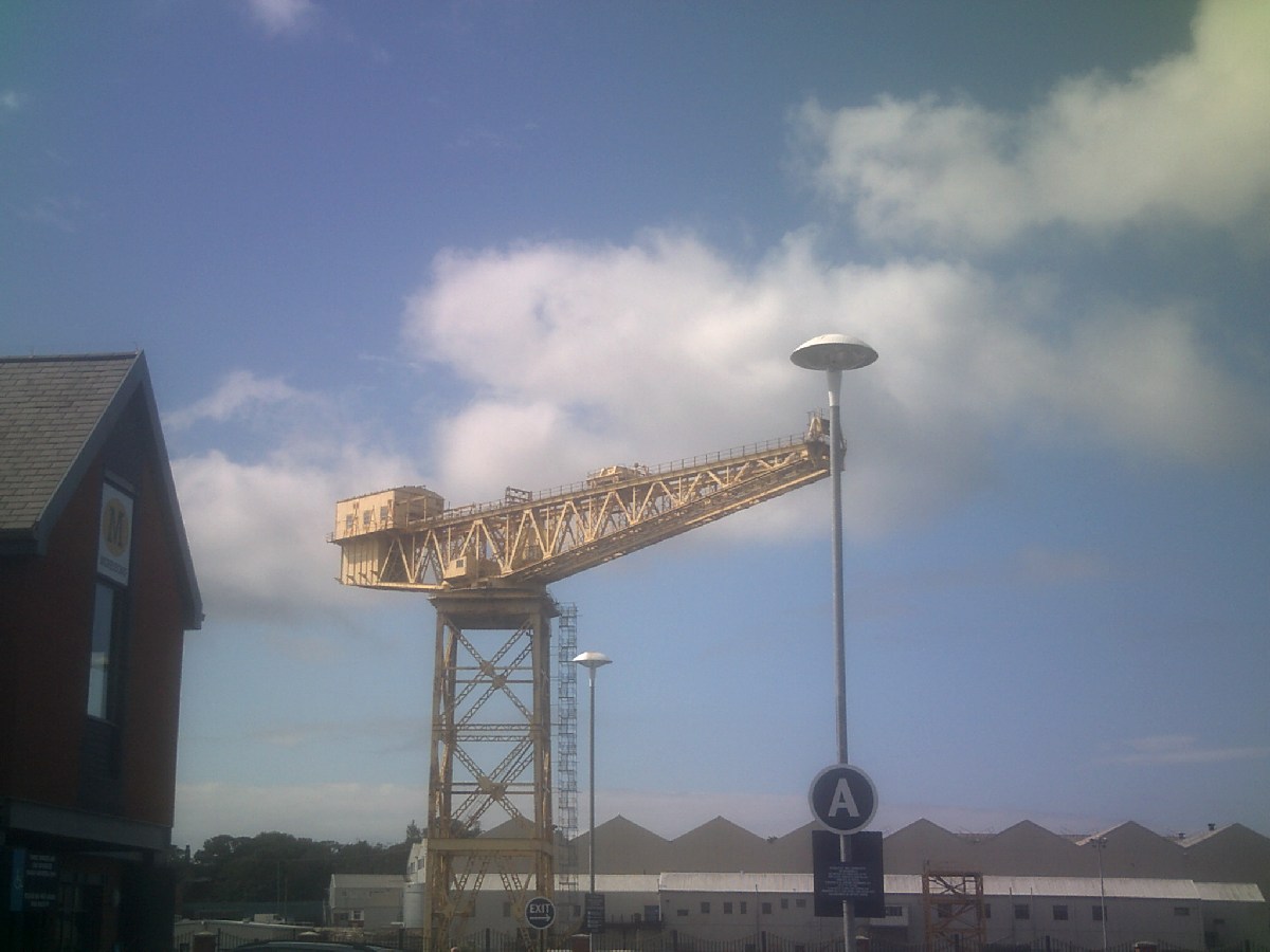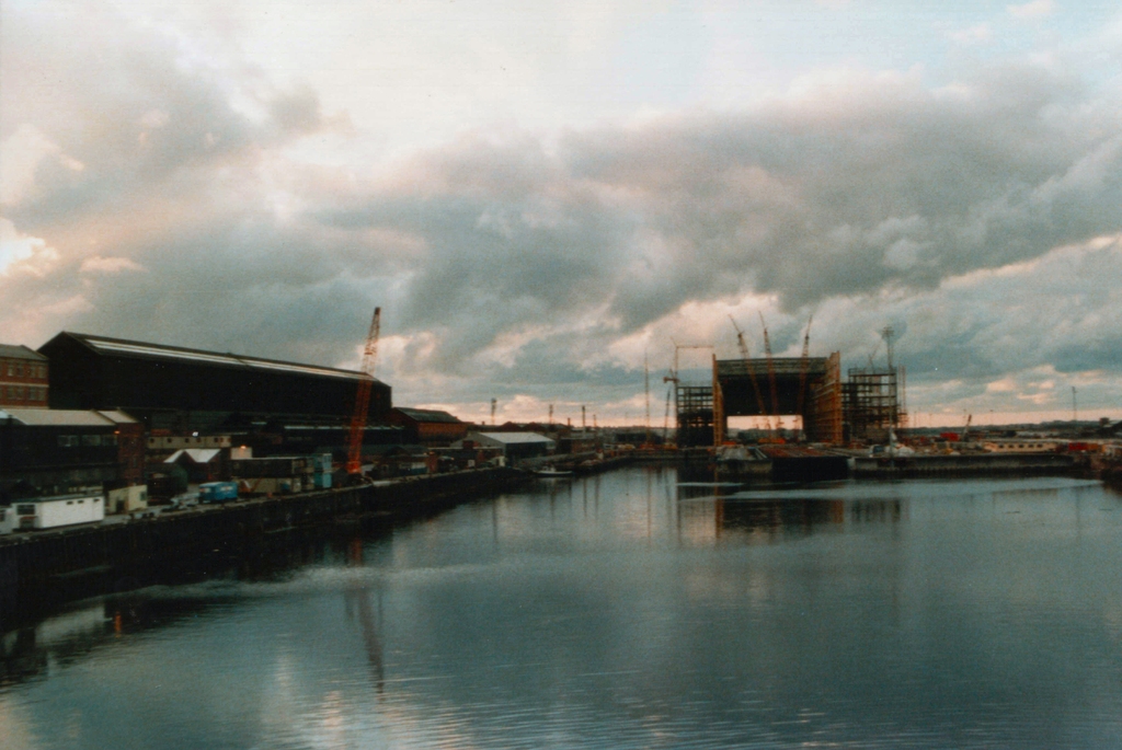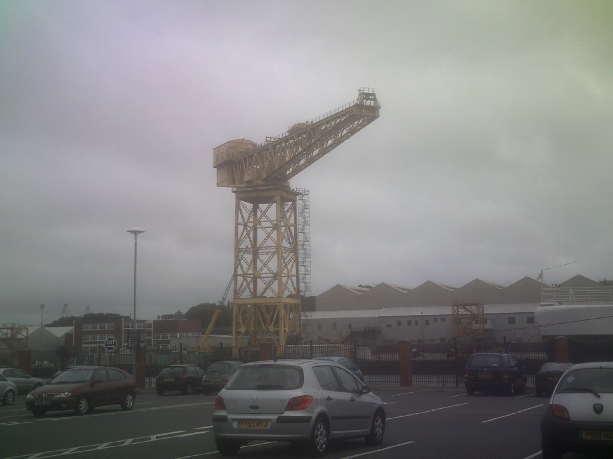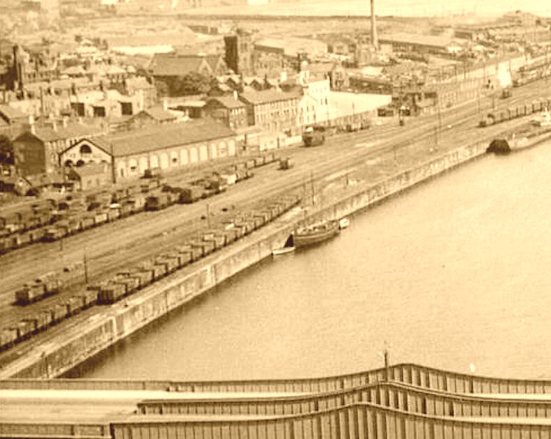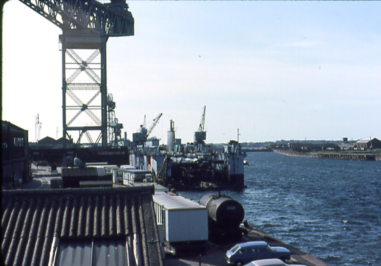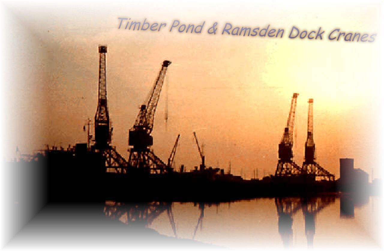 Enhanced view of Ramsden Dock 25 ton cranes taken from the Timber Pond c. 1975. Uploaded by Spike