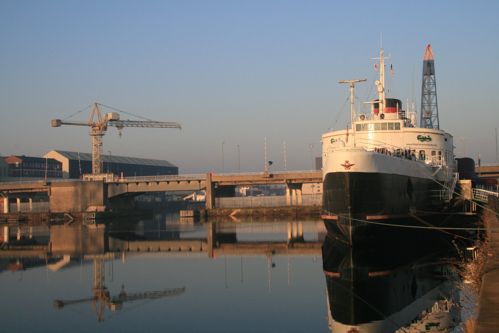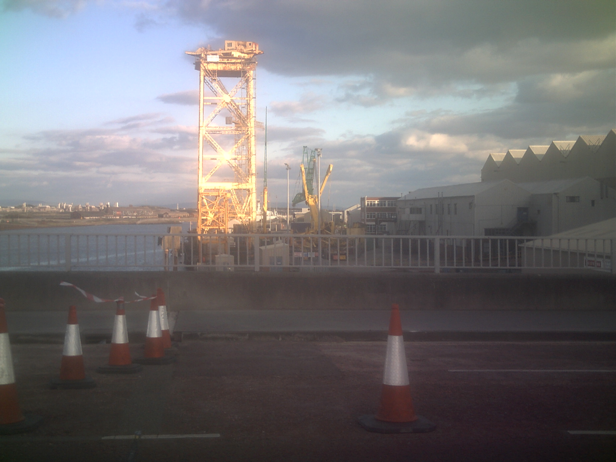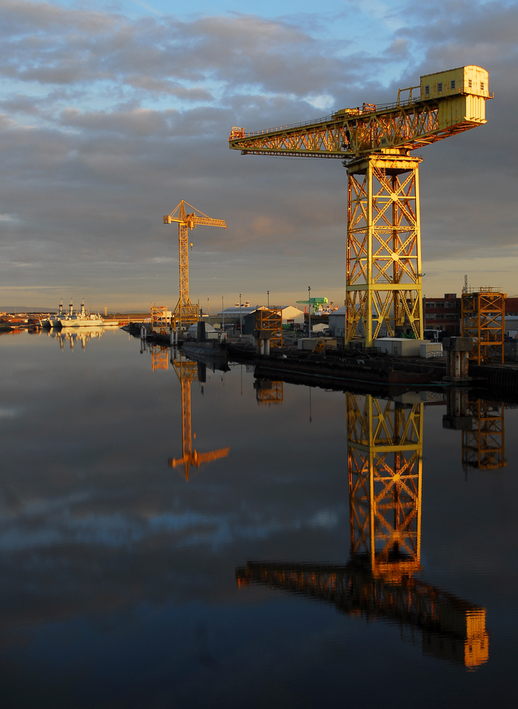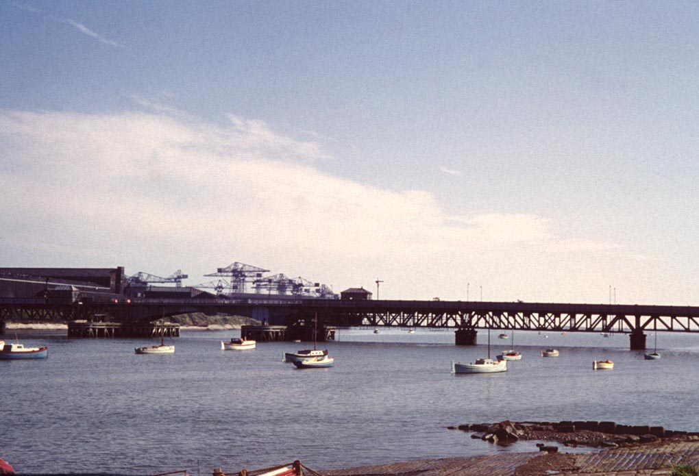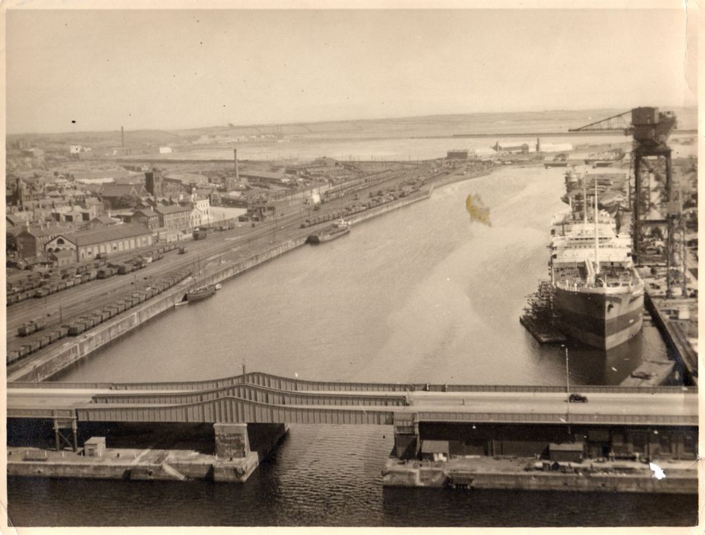 Enhanced view of Ramsden Dock 25 ton cranes taken from the Timber Pond c. 1975. Uploaded by Spike