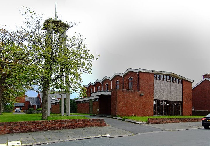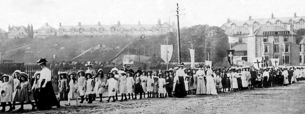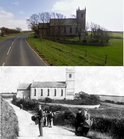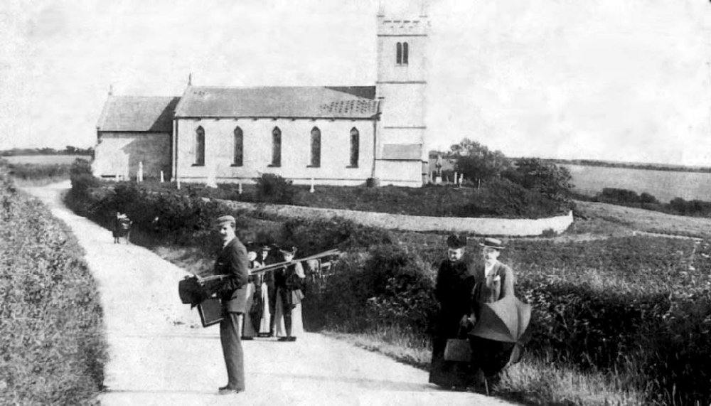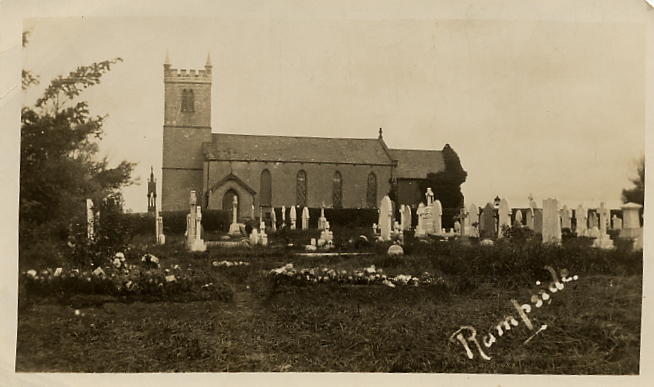 Old photo of the other side of the Rampside Church showing the stones when they were white,and the grass when it was short. Uploaded by June Bushey