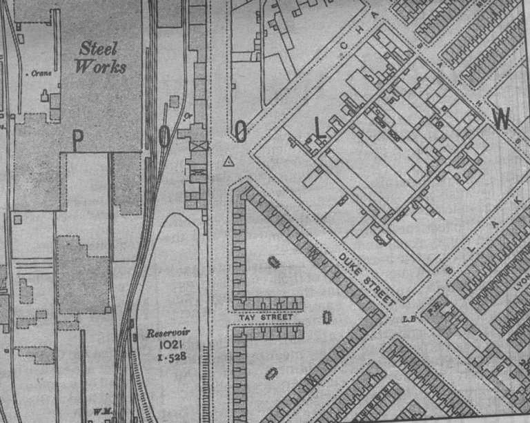 Scotch Buildings Hindpool, map of Tay Street and surrounding area as it was in 1955 Uploaded by George Livesey