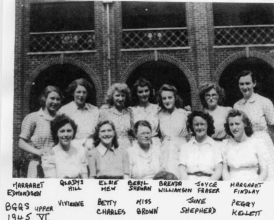 Barrow Girls Grammer School (BGGS) Upper 6th Form school photo with names taken on last day of school in 1945 Uploaded by June Bushey