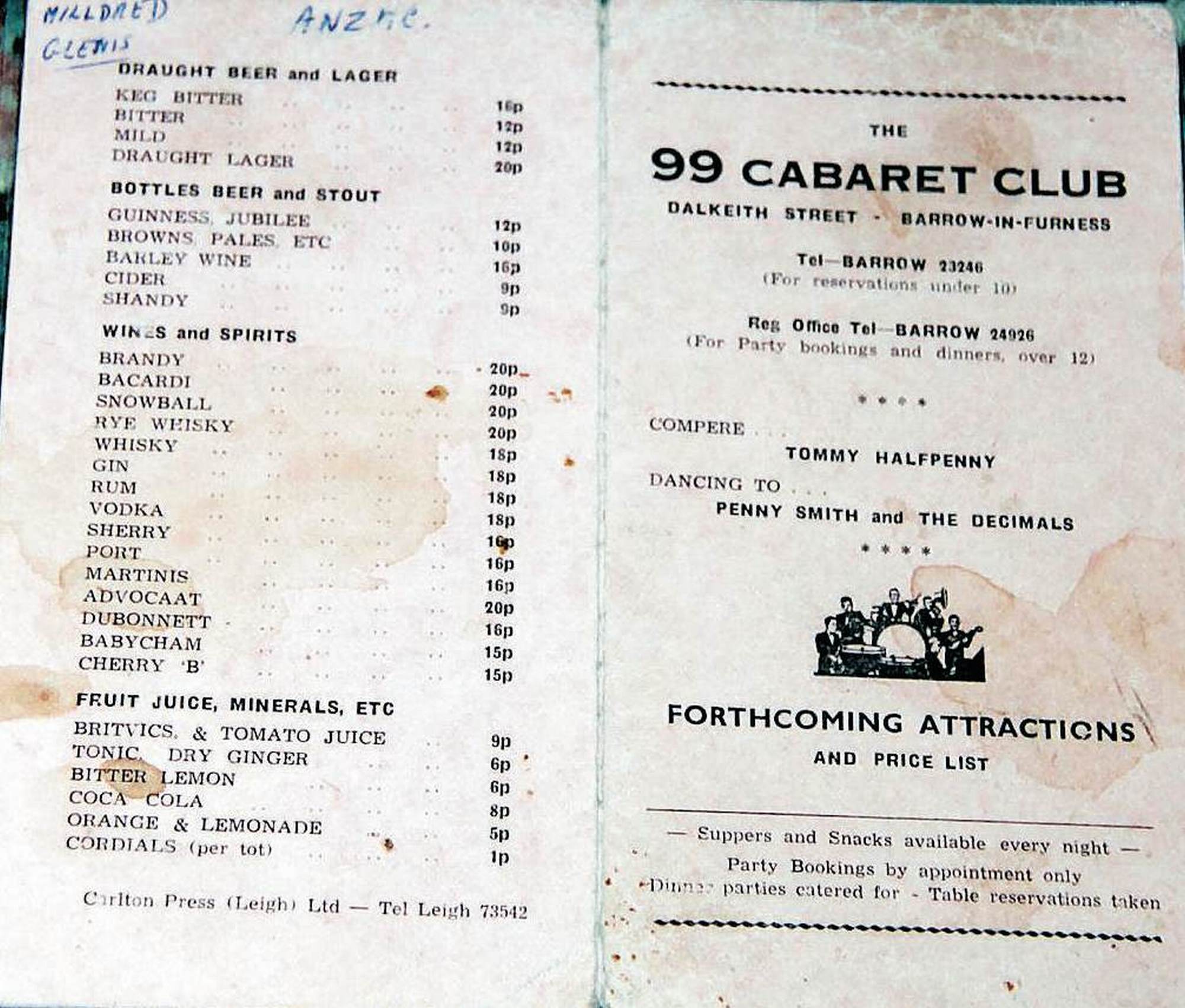 Look at these 1970s prices of drinks in the 99 Club 1970s Uploaded by Anon