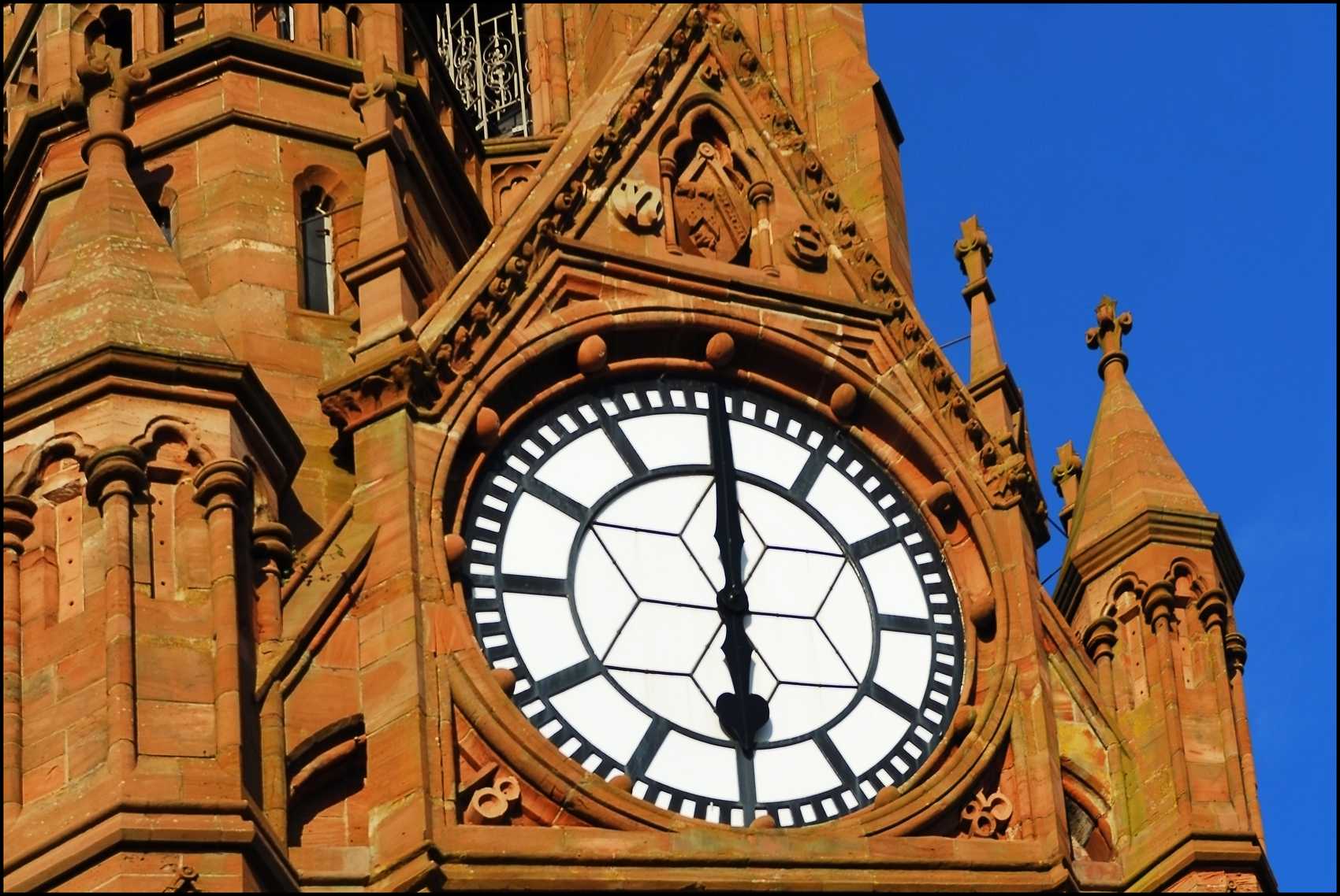 Close up of Town Hall clock face at 6pm Undated Uploaded by UNKNOWN