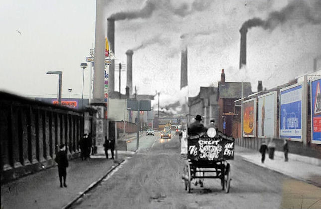 Scotch Buildings looking up Duke St towards the Steelworks, picture dated 1955 Uploaded by George Livesey